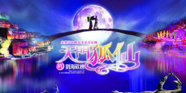 巍巍天門山,浩浩天門洞。雄偉奇峻的武陵山脈中,有一條長5公里、海拔高差1000余米的峽谷;峽谷內(nèi)芳草遍地,溪流潺潺,時有云霧自谷內(nèi)溢出,宛若現(xiàn)世桃源。《天門狐仙—新劉?抽浴返闹魑枧_就與這奇峰、峽谷、森林、流瀑溶為一體,共同形成一個縱深數(shù)公里、橫寬和高差均逾千米、世界唯一的一座高山峽谷大舞臺!